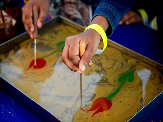 Performances on the festival lawn stage included Bharatanatyam classical dance, Indonesian gamelan music, traditional Chinese dances, and a Nowruz table-setting. Across the lawn, vendors sold everything from specialty teas to jewelry to food-inspired toys while artists shared techniques such as Ebru water marbling and Islamic calligraphy provided by Nihal Sonmez and Fahim Somani from the Islamic Arts Society. Guests of all ages enjoyed crafts such as Afghan-inspired kites, miniature zen gardens, bracelet-weaving, and more. Photo Credits “Asia Society Texas Center/Chris Dunn”
