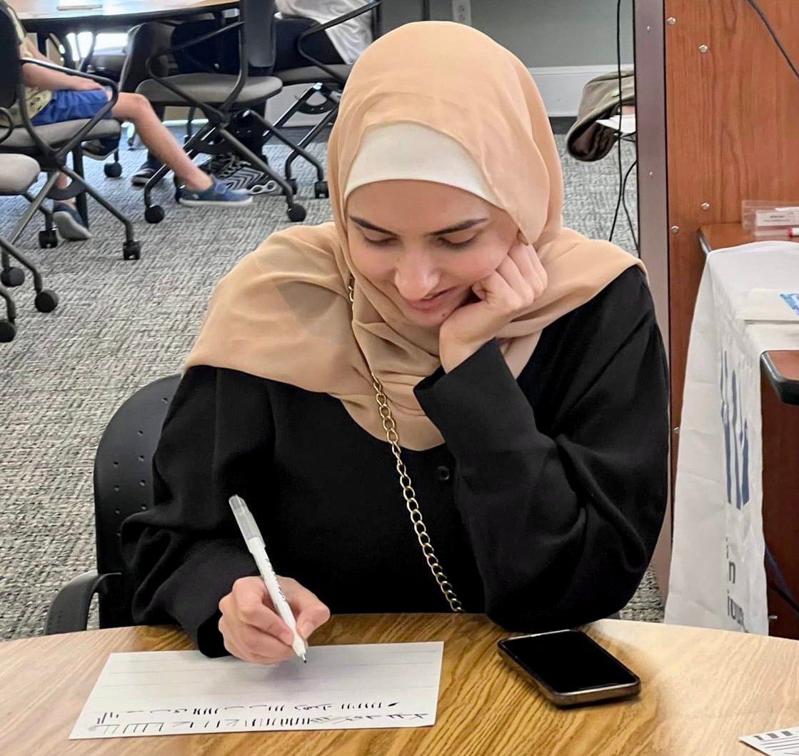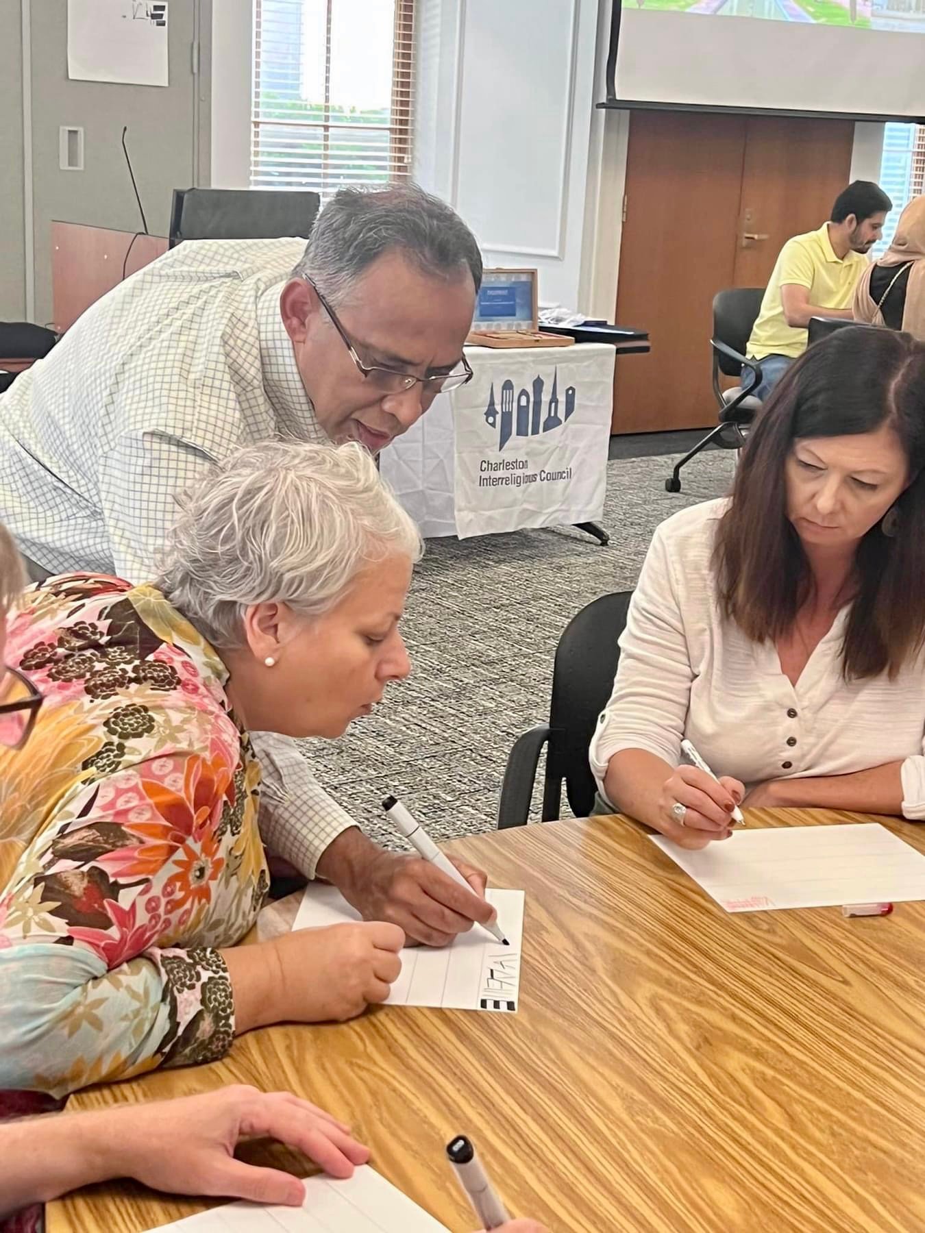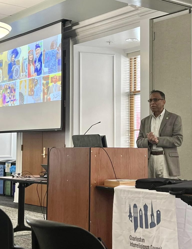 The Islamic Arts Society presented a lecture and workshop at the College of Charleston’s School of Education. The event was organized by the Charleston Interreligious Council and is part of the series on interfaith dialogue focusing on Art and Spirituality. The Lecture titled “Islamic Art: A Shared Legacy” focused on the commonalities in art between different cultures and traditions. The lecture was followed by a hands-on workshop on Arabic calligraphy. The lecture and workshop were presented by Dr. Khawaja Azimuddin.