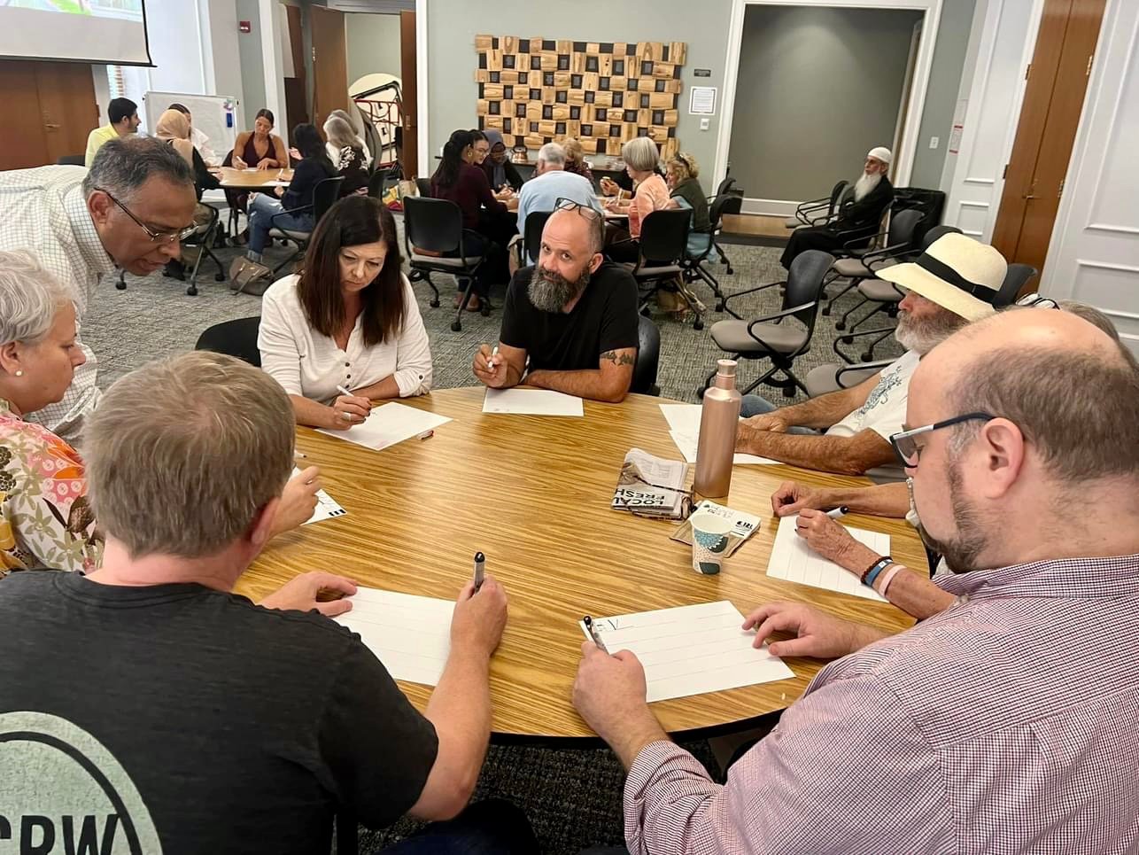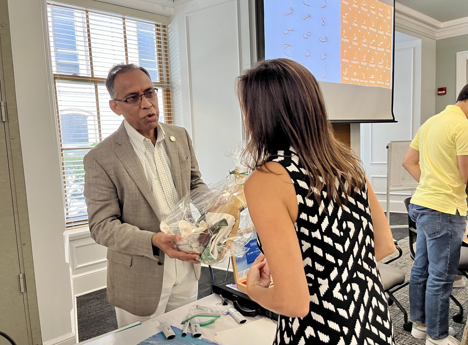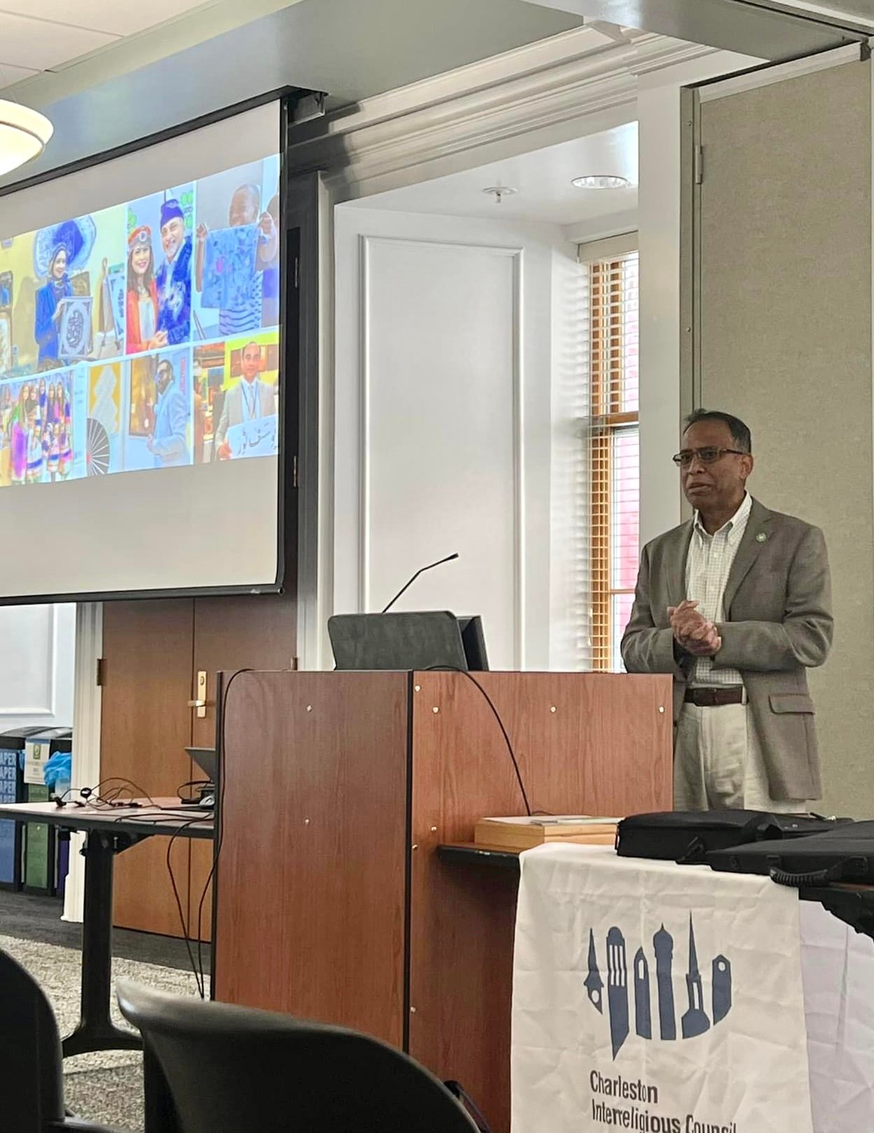 The Islamic Arts Society presented a lecture and workshop at the College of Charleston’s School of Education. The event was organized by the Charleston Interreligious Council and is part of the series on interfaith dialogue focusing on Art and Spirituality. The Lecture titled “Islamic Art: A Shared Legacy” focused on the commonalities in art between different cultures and traditions. The lecture was followed by a hands-on workshop on Arabic calligraphy. The lecture and workshop were presented by Dr. Khawaja Azimuddin.