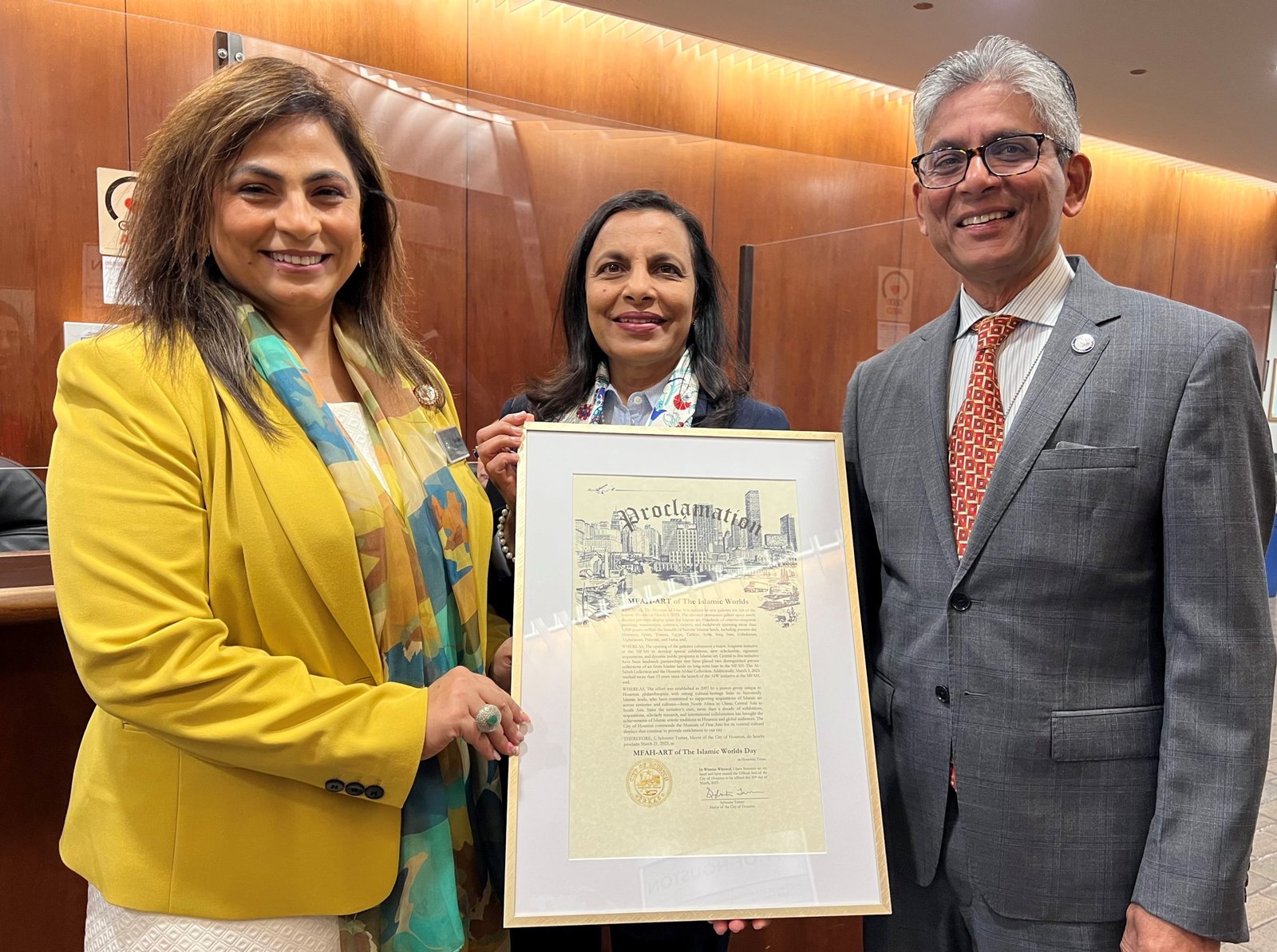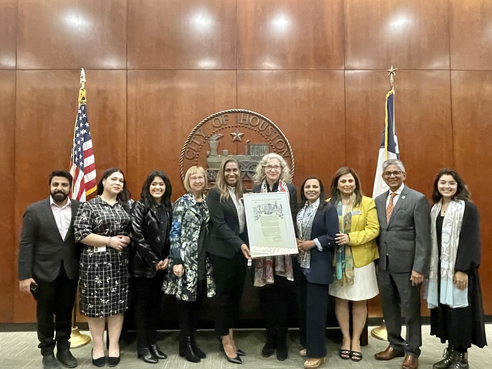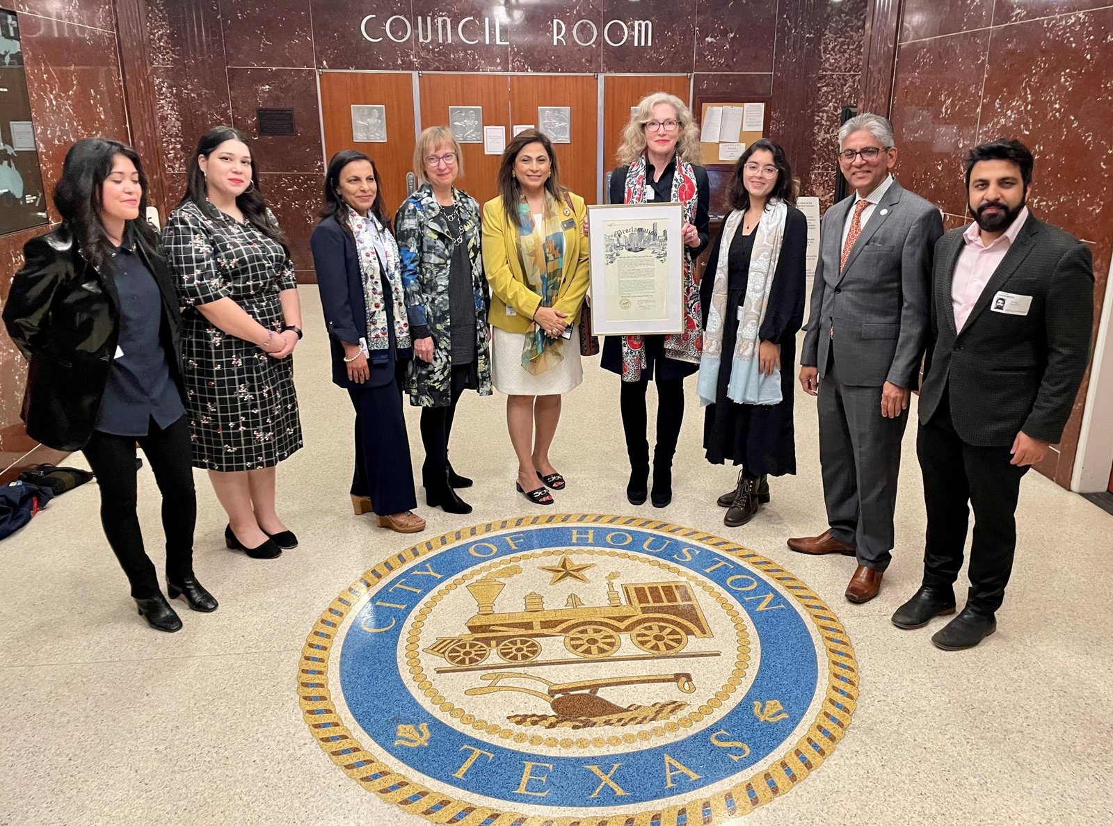 On March 21st, 2023, Islamic Arts Society was honored to be invited as a partner by the Museum of Fine Arts Houston, to receive a proclamation recognizing the permanent galleries for Art of the Islamic Worlds and the inclusivity of the Spring festival at the Museum. Vice Mayor Pro Tem Martha Castex-Tatum and Council Member Letitia Plummer presented the proclamation at the City Council session. Islamic Arts Society Board members Zakai Lalani, Zafar Tahir, and Shaheen Rahman joined Dr. Aimee Froom (MFAH Curator of Islamic Art Galleries) and Dr. Caroline Goeser (MFAH Chair of Learning and Interpretation) in the Proclamation ceremony at Houston City Hall.