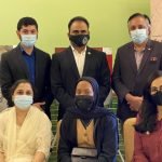 President of the Islamic Arts Society Dr. Khawaja Azimuddin informed the visitors that Islamic art has been produced over the last 1400 years by Muslim and non-Muslim artists. “Calligraphy and interlacing arabesque or geometric patterns are the Hallmark of Islamic art. You will often notice there are no figures or humans in this art. You will see it as intricate repetitive vegetal or biomorphic patterns and you will find it almost everywhere around you in clothing, carpets, or decorations. There may be patterns inspired by Islamic arts even at your home and you may not have realized it”. He said.