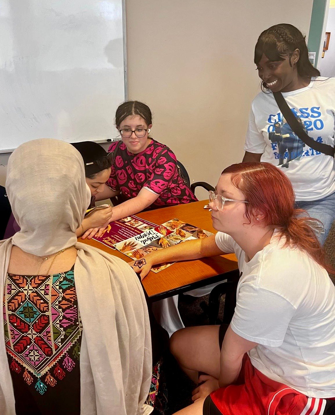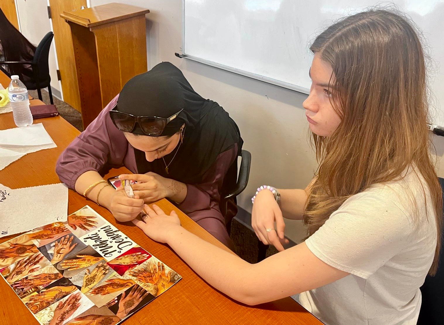 The Tullis Library held a captivating Henna workshop, hosted by the Islamic Arts Society on June 6th. A large crowd consisting of locals and library attendees showed up to participate in the traditional art form. Led by Henna artists Mishal Ali and Zaynab Syed, attendees were treated to a display of intricate henna designs that showcased the rich heritage and cultural significance of Islamic art. Participants actively engaged in hands-on learning, led by the Henna artists. The Islamic Arts Society and Artists were appreciated and had a great time showing the importance and beauty of Islamic Arts.