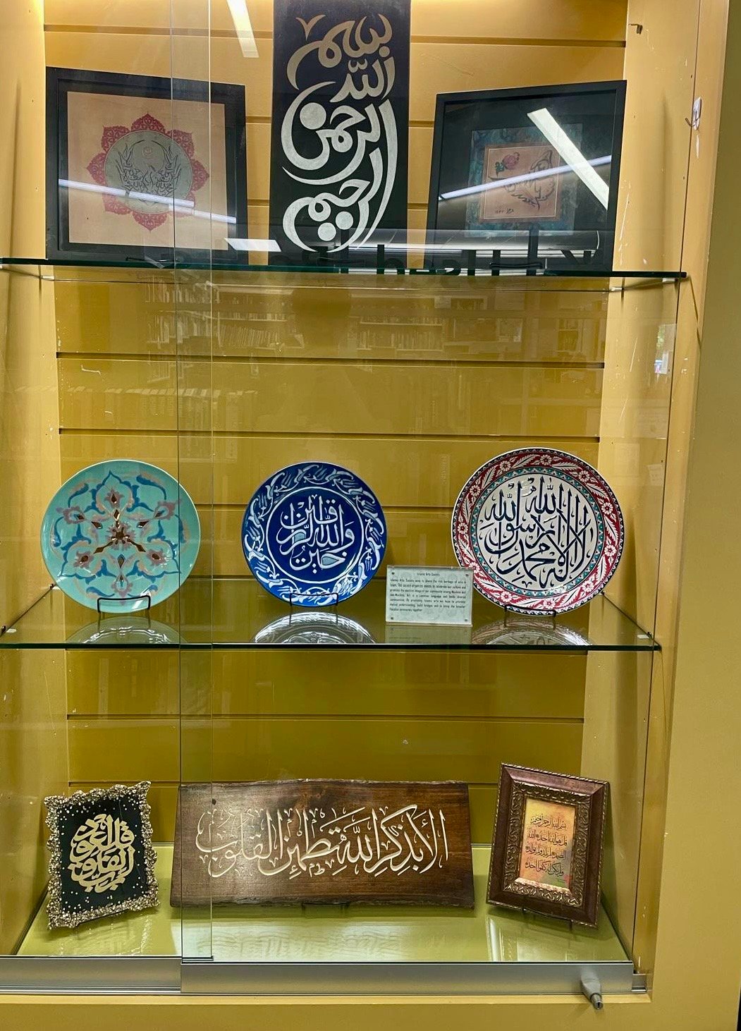 Alhamdullilah during the months of June and July, the Islamic Arts Society is showcasing their intricate display of various Islamic Art pieces at Tullis and Kingwood libraries. Showcasing the the intricate beauty of Islamic art, the library display case was filled with a mesmerizing array of geometric patterns, exquisite calligraphy, and timeless masterpieces. From locals to library regulars passed the exhibition, where they found themselves drawn to the rich art of Islamic artistic traditions, sparking conversations and creating connections across many diverse cultures.