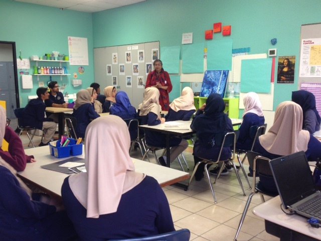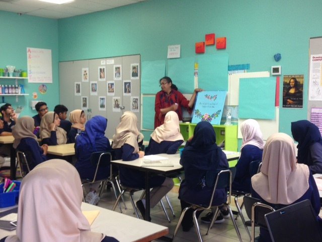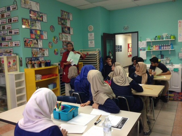 Islamic Arts Class at Al-Hadi School IAS artis Swaleha Khanzada teaching basics of Islamic Arts to students at Al-Hadi school in Houston.