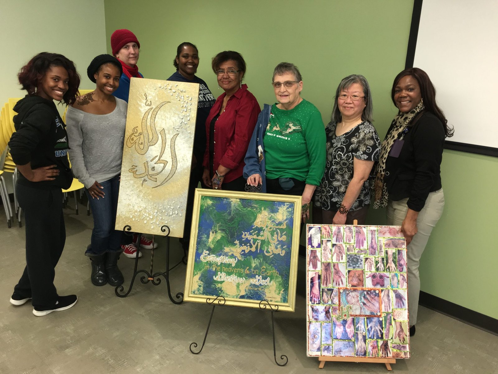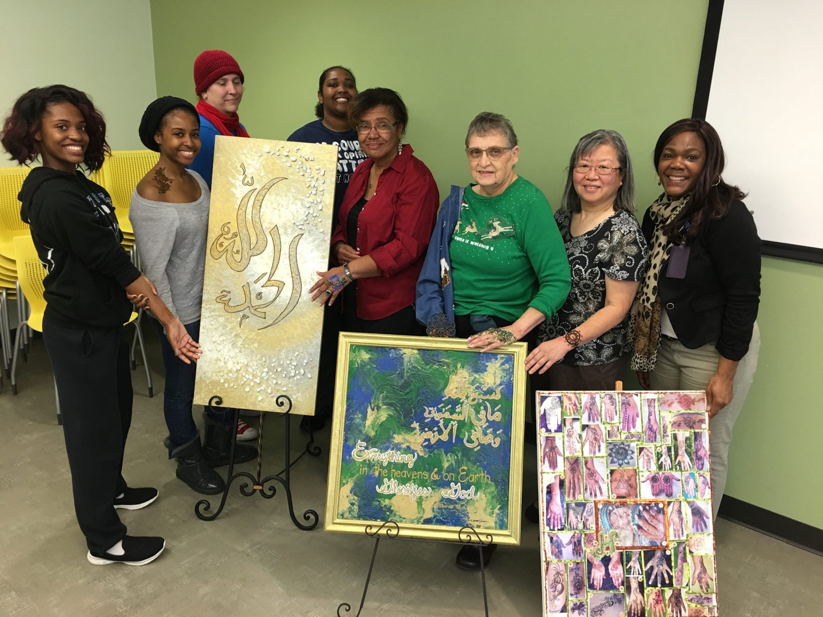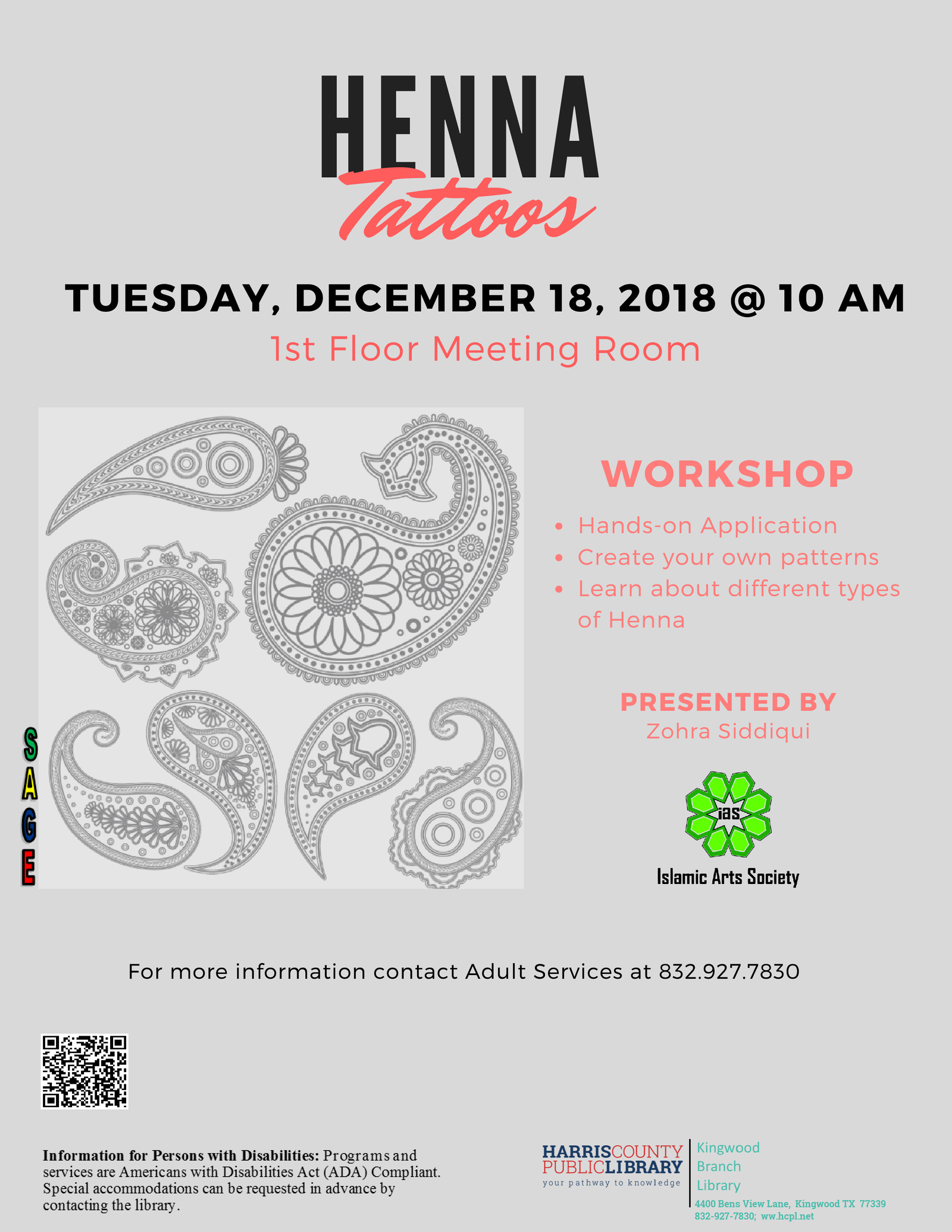 Islamic Arts Society held a month-long display of Islamic Arts at the Kingwood Library. As part of the display A Calligraphy class was held and the 4th of December, artist Munther Yousef taught Islamic Calligraphy to the attendees. IAS Artist Zohra Siddiqui will be conducting a henna workshop on the 18th of December.