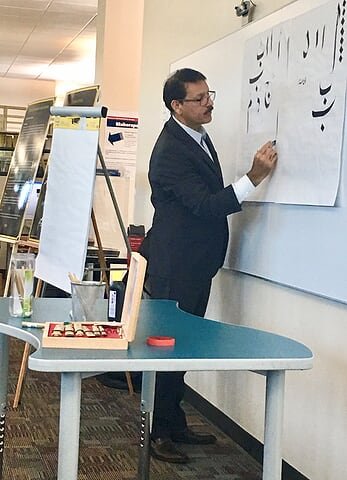 A month-long exhibition of Islamic Arts took place at the Lone Star College, North Houston Campus. Staff and students of the college were enthralled by this artistic display of beautiful art. A two-hour long calligraphy workshop was also conducted during this exhibition by Dr. Zulfiqar Ali and was attended by over 30 students. IAS wishes to thank Librarian Christine Ramsey and Dr. Bruce Martin of the Lone Star College for organizing this event.