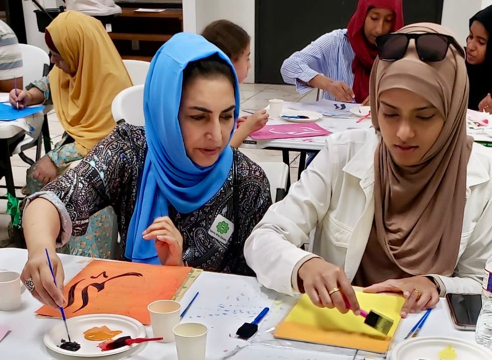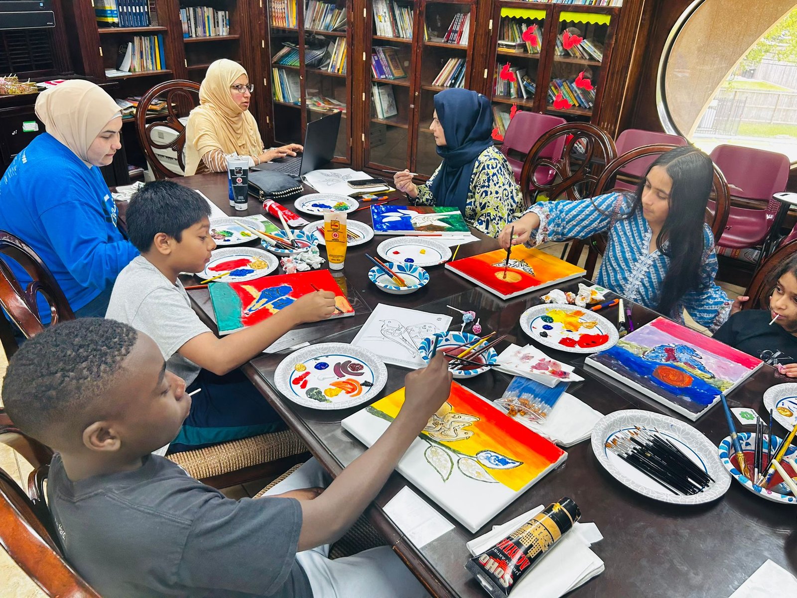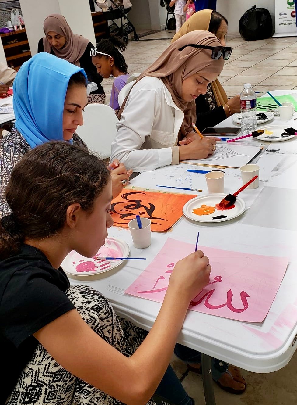 Free Classes were held in the four corners of Harris country at Masjid Al-Ansar, Masjid Al-Salam, Matyam Islamic Center and the River Oaks Islamic Center during the months of July and August 2025. Artists Sana Mirza, Mohammad Eisa, Hina Chaudhry, Behlah Saifee, Mohammad Eisa, and Monther Yusuf taught classes to students on Calligraphy, illumination and painting
